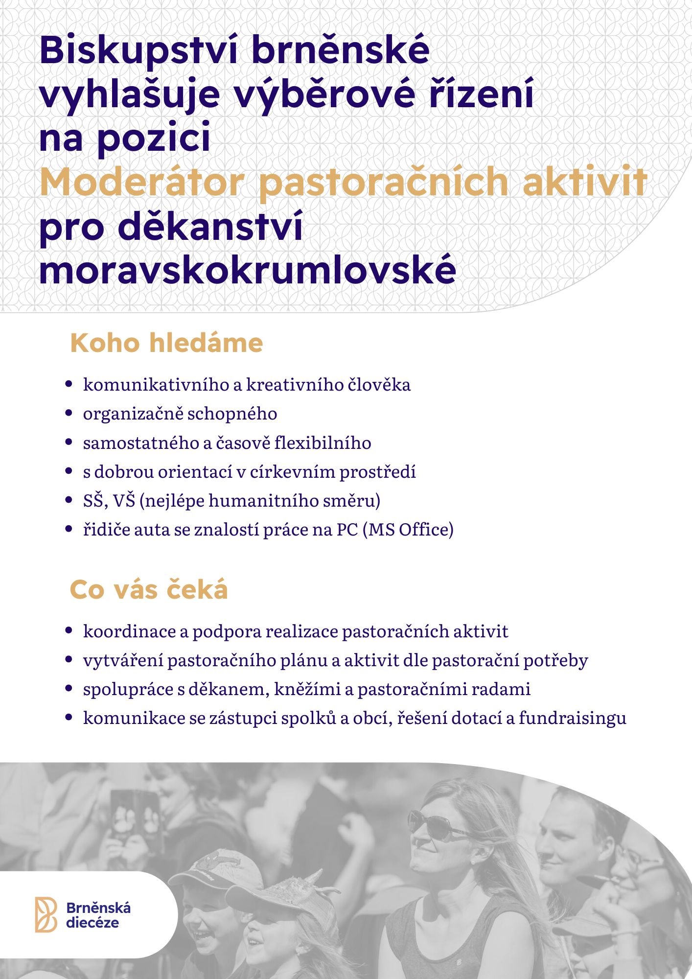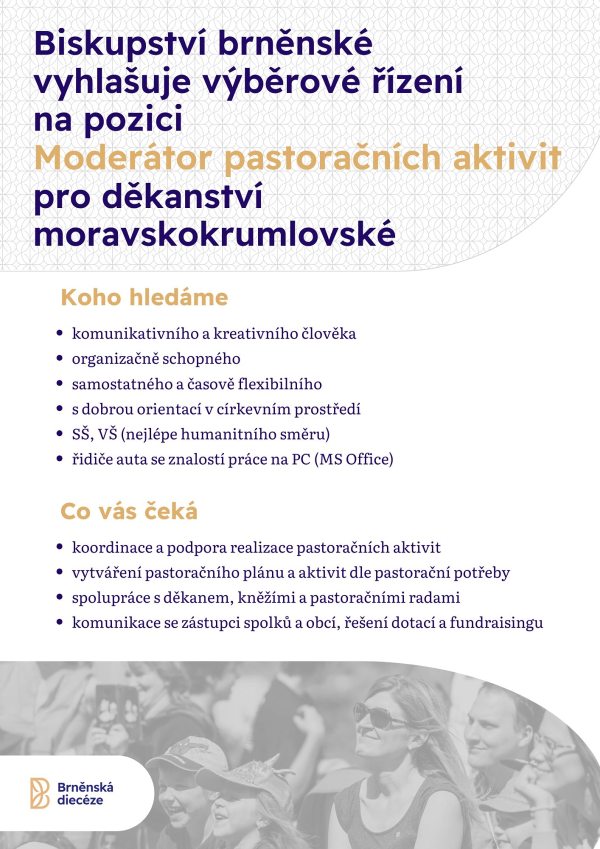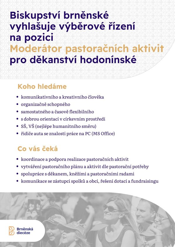 Biskupství brněnské vyhlašuje výběrové řízení na pozici MODERÁTOR/KA PASTORAČNÍCH AKTIVIT