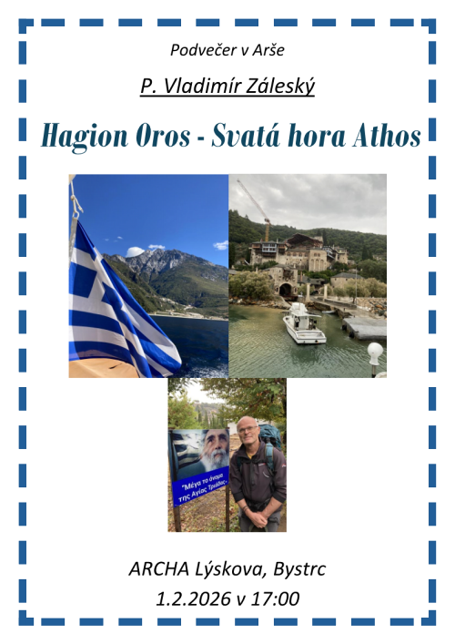 Cestovatelsko–duchovní přednáška brněnského děkana P. Vladimíra Záleského o Svaté hoře Athos se uskuteční v neděli 1. února v 17.00 v Arše v Brně-Bystrci.
