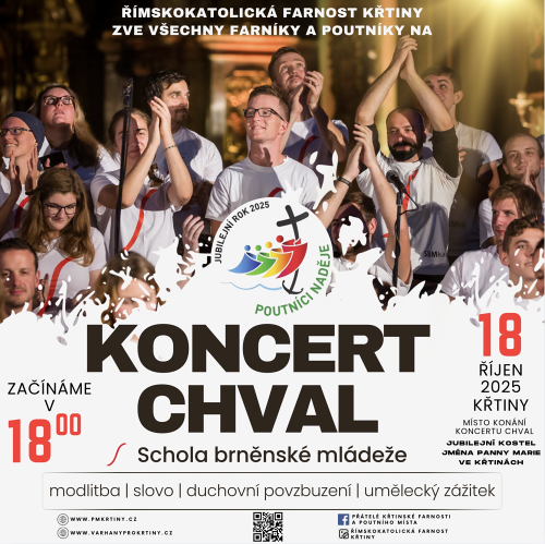 Koncert chval se Scholou brněnské mládeže se uskuteční na poutním místě ve Křtinách u Brna v sobotu 18. října v 18 hodin.