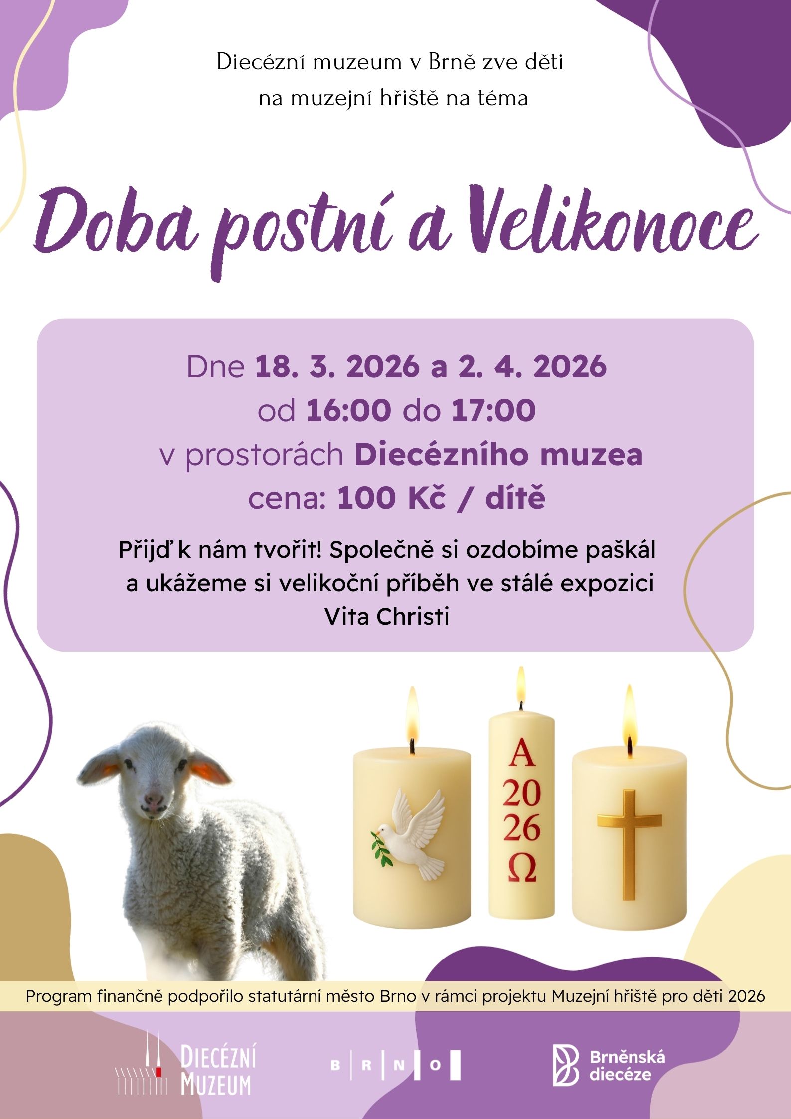 Diecézní muzeum na Petrově zve na muzejní hřiště pro veřejnost Doba postní a Velikonoce. Přijďte do muzea ve středu 18. března nebo ve čtvrtek 2. dubna vždy od 16:00 do 17:00 a objevte, jaký význam mají pro křesťany velikonoční svátky.