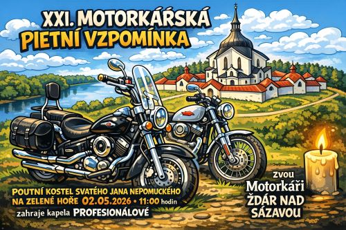 Zastavte se v sobotu 2. května na Zelenou horu zavzpomínat na všechny zemřelé motorkáře a přijmout požehnání pro další cestu na našich silnicích. Začátek v 11.00.