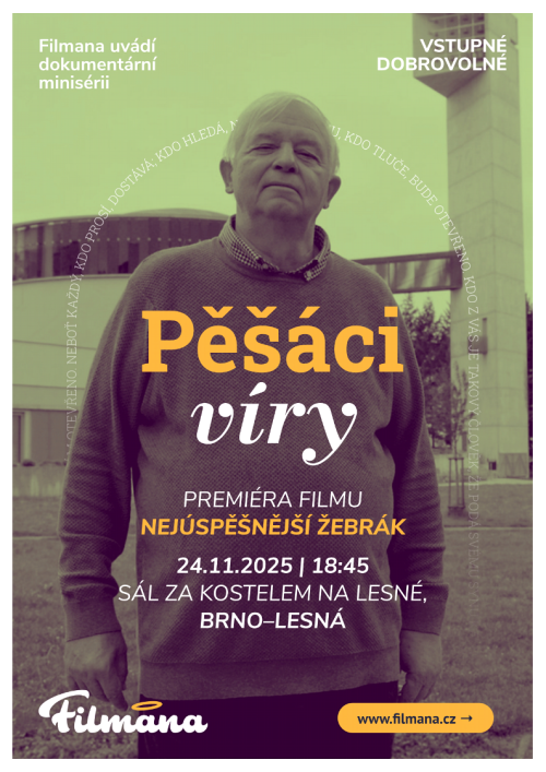Zveme na premiéru filmu Nejúspěšnější žebrák z cyklu Pěšáci víry o P. Pavlu Hovězovi z Brna-Lesné. V pondělí 24. listopadu v 18.45 v sále za kostelem na Lesné. Vstupné dobrovolné.
