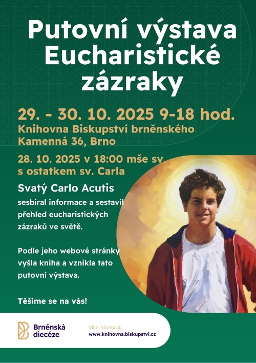 Ve středu a čtvrtek 29. a 30. října můžete v Knihovně Biskupství brněnského zhlédnout výstavu Eucharistické zázraky. Provozní doba knihovny je 9–18 hodin.