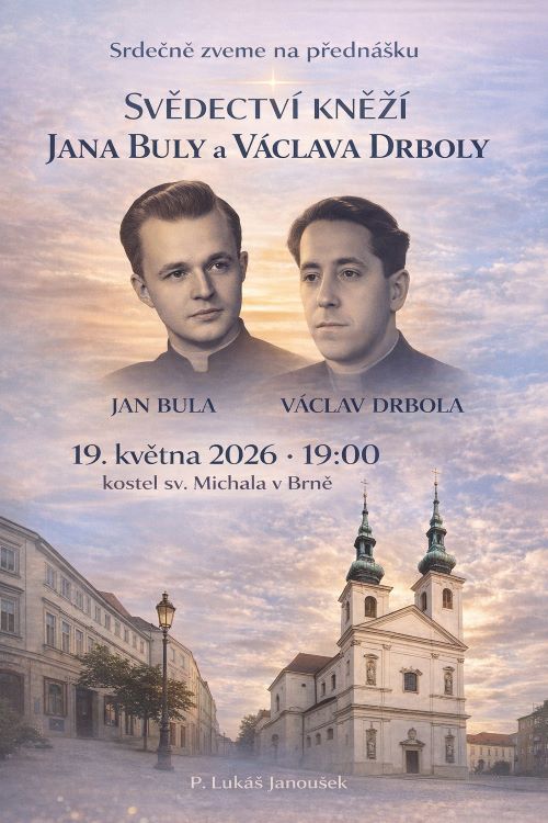 Do brněnského chrámu sv. Michala jste zváni na přednášku kněze Lukáše Janouška o Janu Bulovi a Václavu Drbolovi. Přednáška začíná v úterý 19. května v 19 hodin.