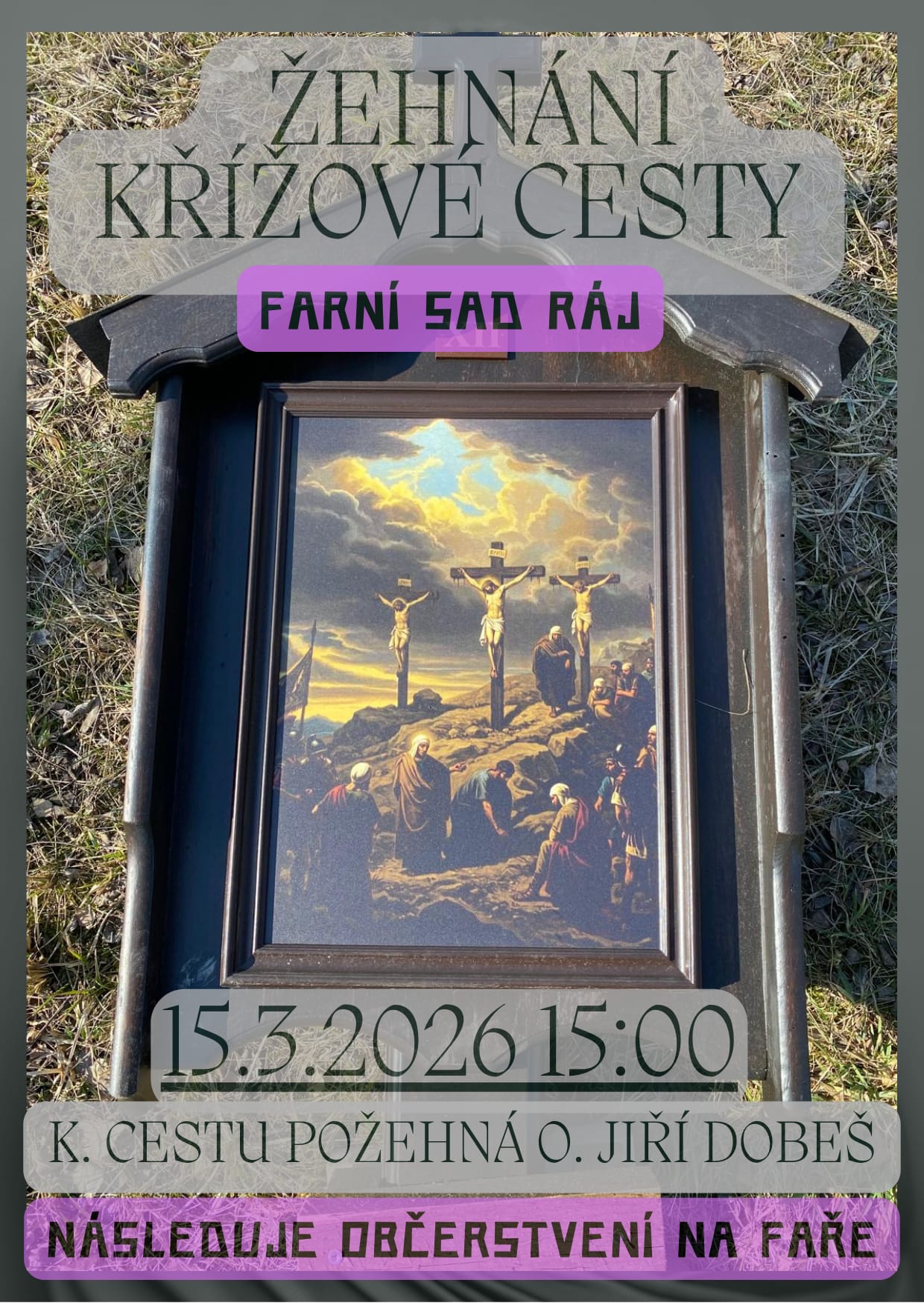 Žehnání nové křížové cesty ve farním sadu Ráj v Třebíči proběhne v neděli 15. března v 15 hodin. Součástí bude pobožnost křížové cesty inspirované životem Jana Buly a Václava Drboly.